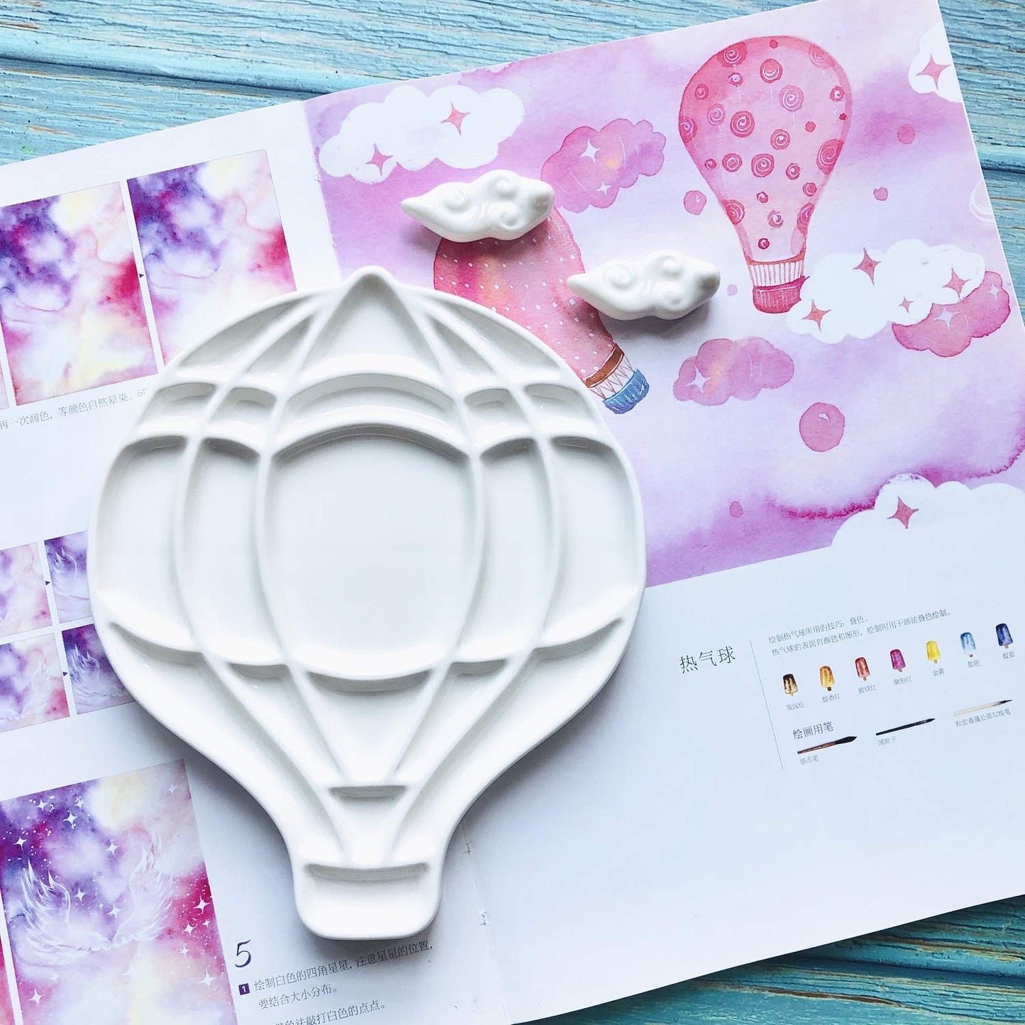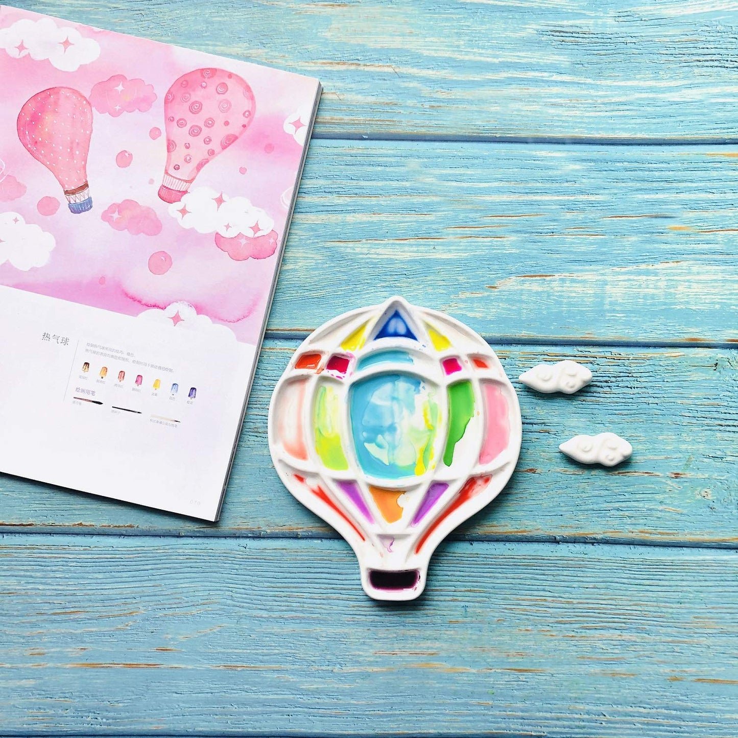 Details: Hot air balloon-shaped art palette for mixing watercolor, gouache, acrylic and other paints. The color palette is made of ceramics with a smooth surface, which is very suitable for color mixing and easy to clean.