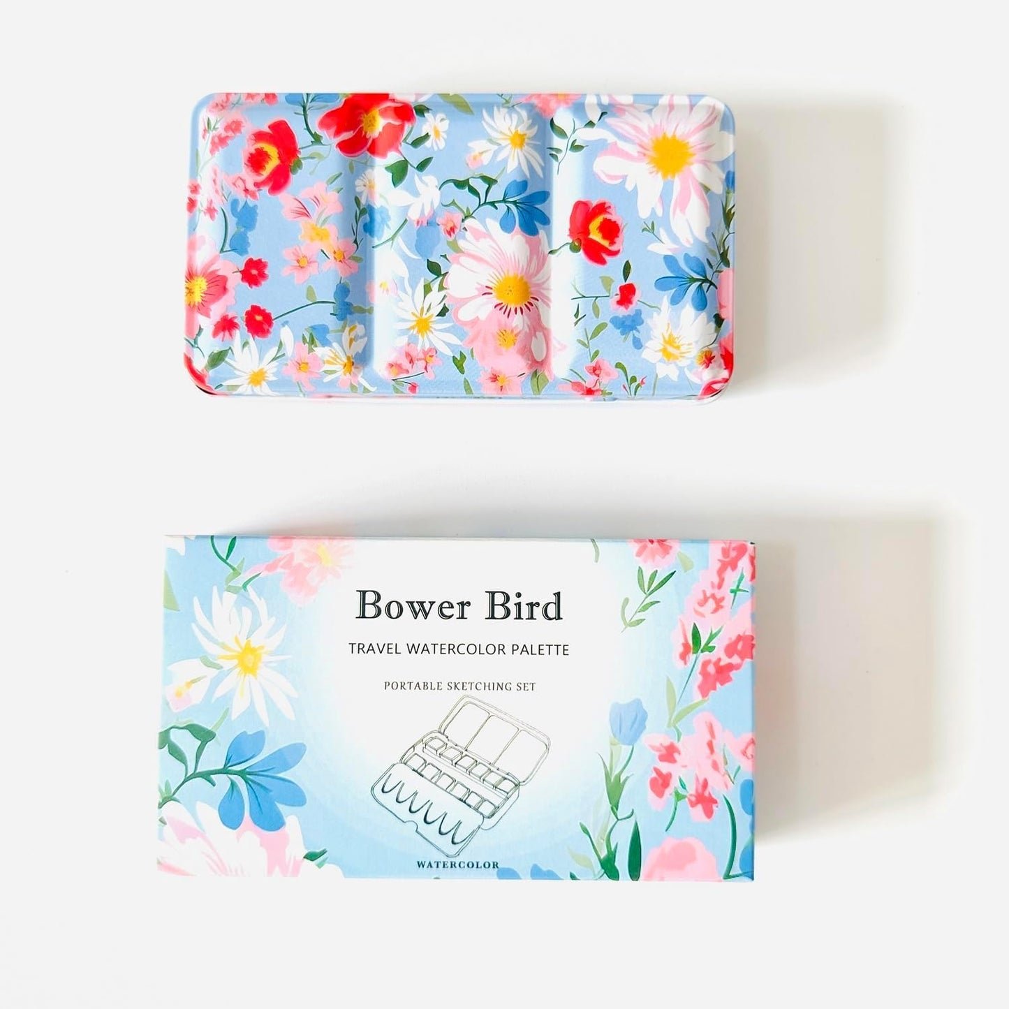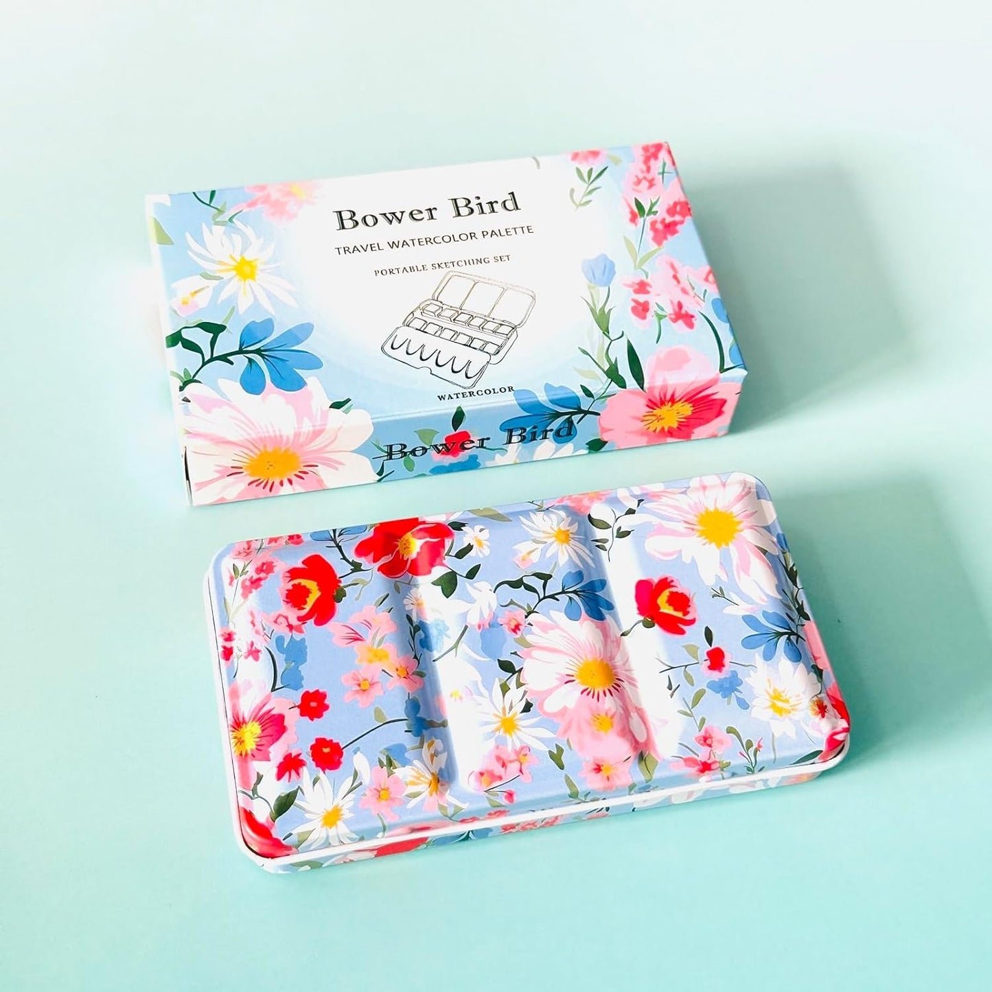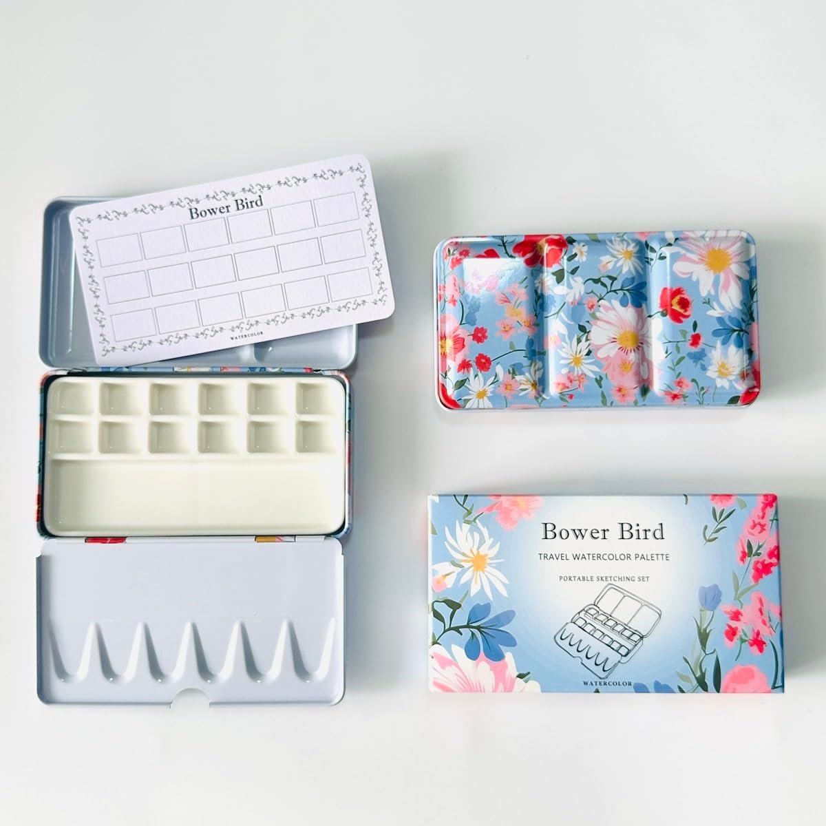 Bower Bird Travel Watercolor Palette,Portable Ceramic Palette 16 Well,Empty Paint Palette,Small Travel Metal Paint Boxwith Porcelain Palette (12Well)